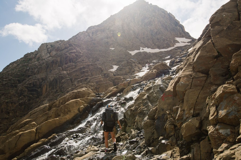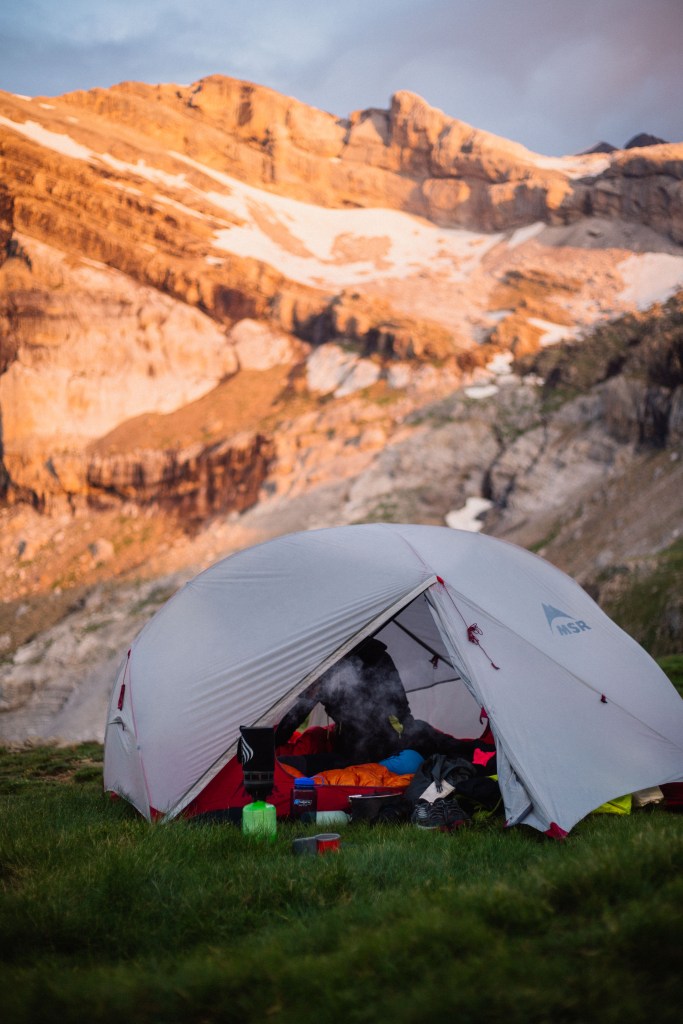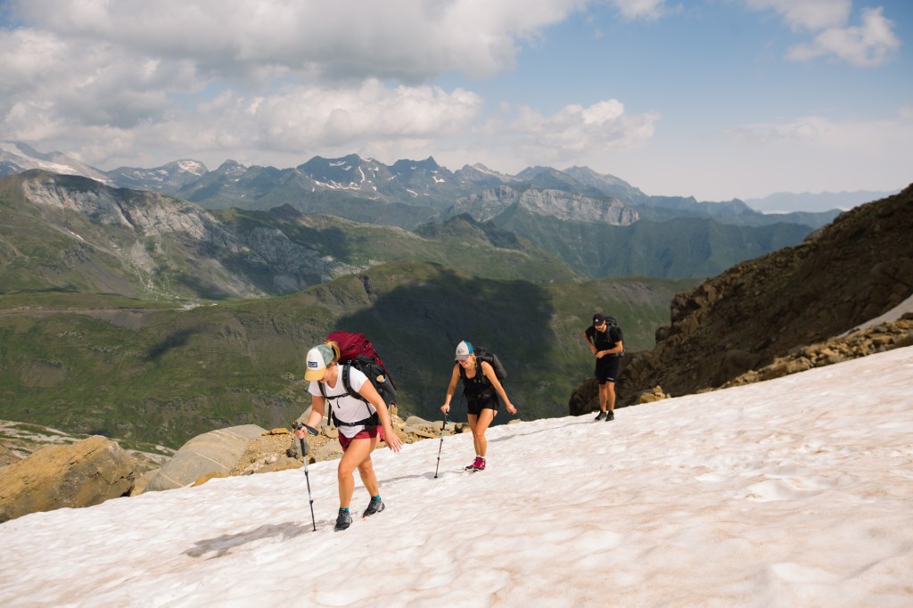 Cette vallée nous offre un lever de soleil remarquable. La montée vers la brèche de Rolland est longue, 1000 mètres positifs depuis notre camp, et parfois technique. Petit à petit, le paysage des Pyrénées se dévoile.